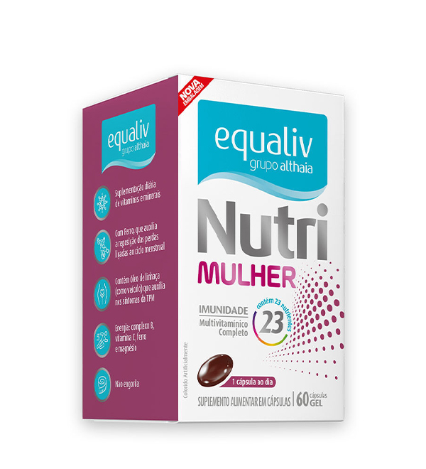 O Nutri Mulher tem nutrientes ajustados às necessidades femininas, como maior teor de ferro e ácido fólico.