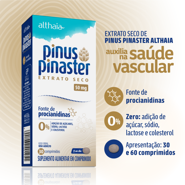 Pinus pinaster é um suplemento feito a partir do extrato bioativo da casca do pinheiro‑marítimo, conhecido por sua poderosa ação antioxidante natural. Não contém glúten.